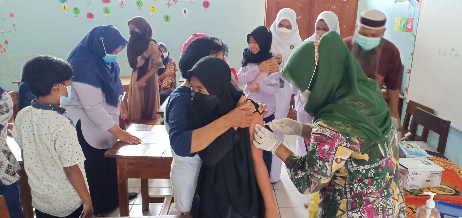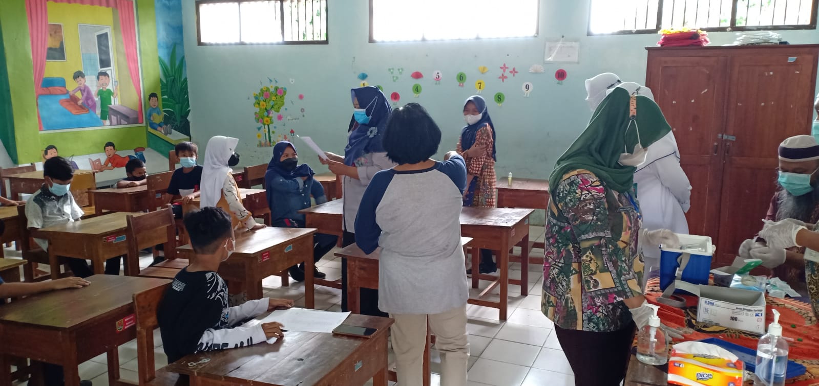 Vaksinasi untuk kelas 1, 2, dan 5 dilakukan bersama dengan Puskesmas Karangmalang Kecamatan Mijen Kota Semarang pada tanggal 27 November 2021.